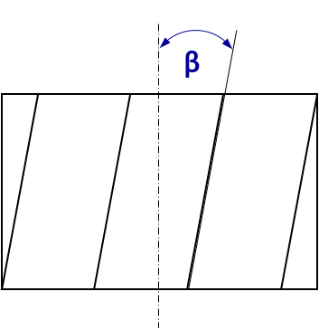 In contrast to spur gears, the teeth of helical gears are inclined at a helix angle β with respect to the gear axis.