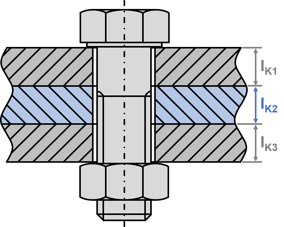 Die Klemmlänge der zweiten Platte lK2 entspricht der Dicke des Bauteils im verspannten Bereich.