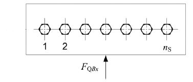 Die Querkraft FQBx ist eine Querkraft in x-Richtung wirkt auf alle Schrauben einer Reihe, wenn die Reihe senkrecht zur Kraftrichtung steht.